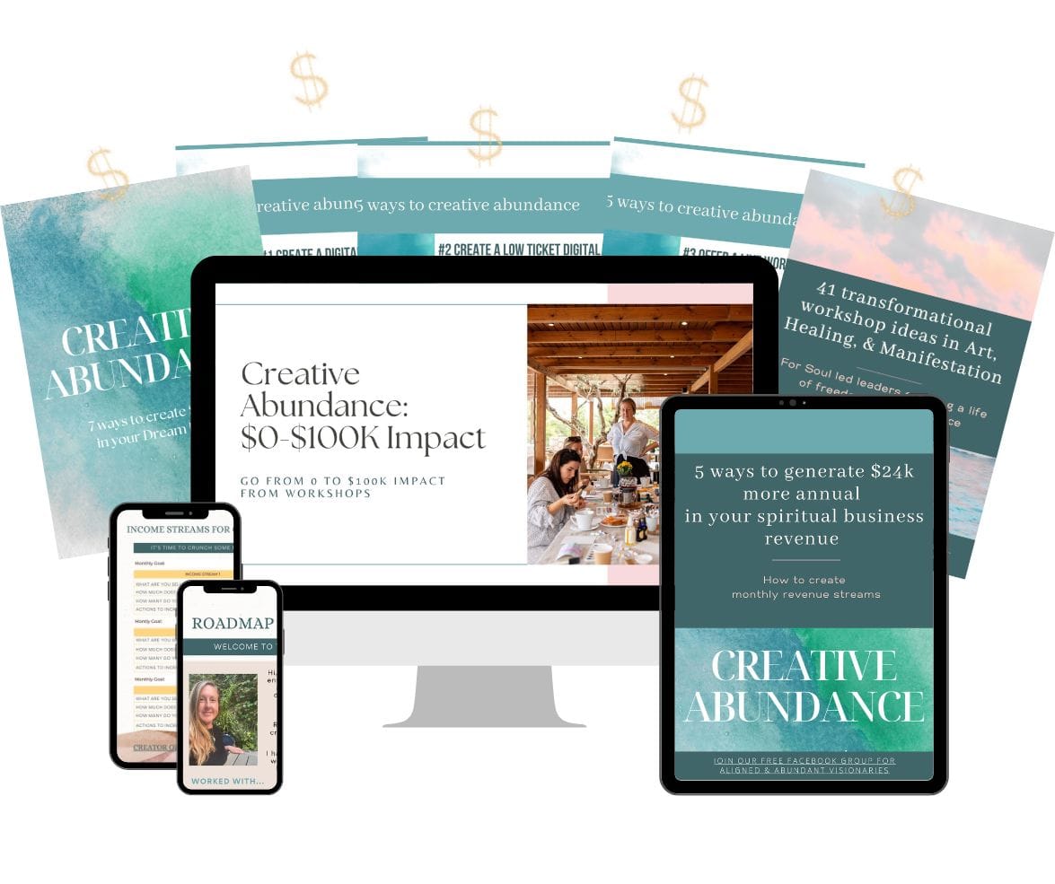 BONUS:Creative Abundance Guide: Learn how I use workshops to create more cashflow and clients and to add 5-figures to my business revenue.